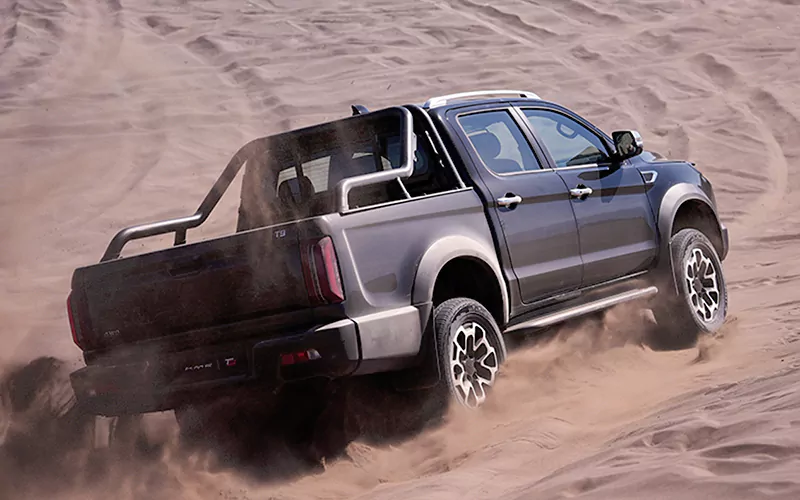 این پیکاپ به گیربکس اتوماتیک ۸ سرعته ZF مجهز است که یکی از بهترین گیربکسهای اتوماتیک چینیهاست و در محصولات روز دنیا هم دیده میشود. سیستم انتقال نیرو قابلیت تغییر بین حالت دیفرانسیل عقب (۲H)، دو دیفرانسیل سبک (۴H) و دو دیفرانسیل سنگین (۴L) را دارد که برای عبور از مسیرهای گلی، شنزار، کوهستانی و آفرودی بسیار کاربردی است. وجود قفل دیفرانسیل عقب، گیرکردن در مسیرهای لغزنده را به حداقل میرساند.