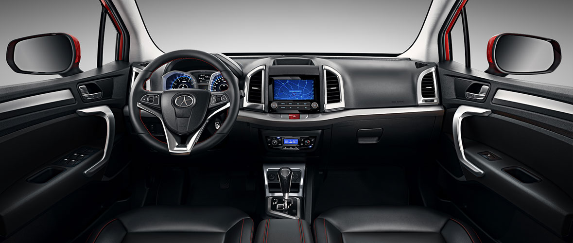 متریال کابین ترکیبی از پلاستیک فشرده مرغوب و روکشهای چرمی در صندلیهاست که در این بازه قیمتی قابلقبول است. فرمان برقی D-Cut با دکمههای کنترلی، ارگونومی خوبی ارائه میدهد و استفاده از رنگ مشکی براق (پیانو بلک) و نوارهای کرومی، جلوه لوکستری به داخل میدهد.